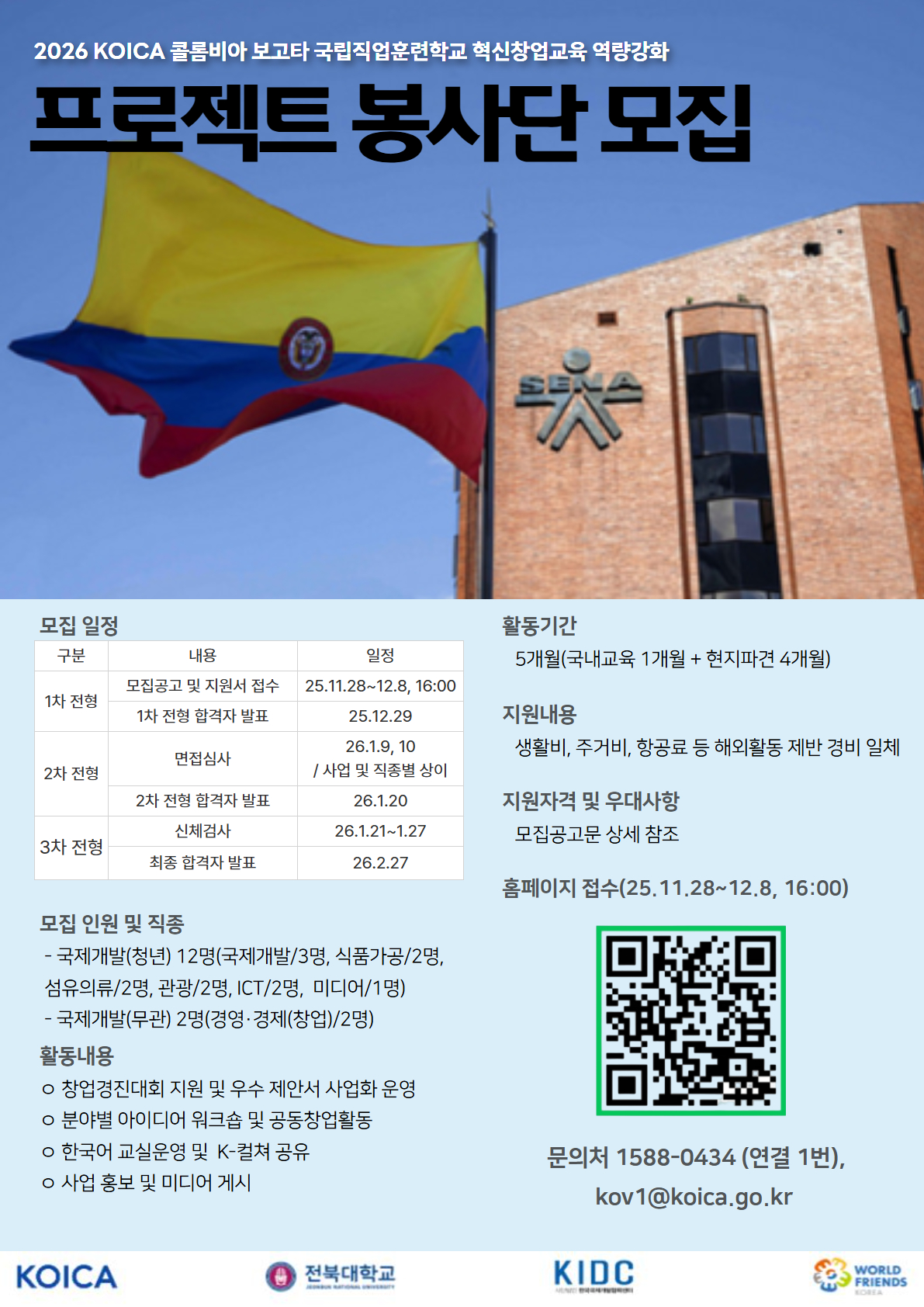 [모집] 2025 개편 KOICA 콜롬비아 보고타 국립직업훈련학교 혁신창업교육 역량강화 프로젝트 봉사단 6기